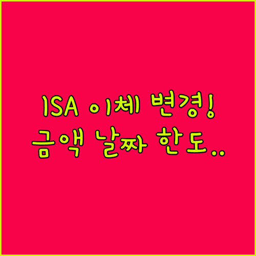 ISA는 장기적인 관점에서 꾸준히 납입하는 것이 절세 혜택을 극대화하는 길입니다. 당장 큰 금액이 부담스럽다면 납입 자동이체 변경을 통해 소액으로라도 유지하며 투자의 흐름을 놓치지 마세요.