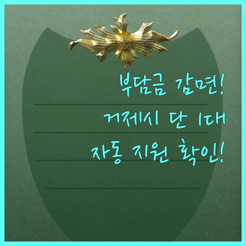 거제시의 환경개선부담금 감면은 법적 근거(환경개선비용 부담법 제9조)를 바탕으로 자동신청됩니다. 대상자는 국민기초생활 수급권자 및 국가유공자/장애인이며, 혜택은 보철/생업용 차량 1대에만 적용됩니다.